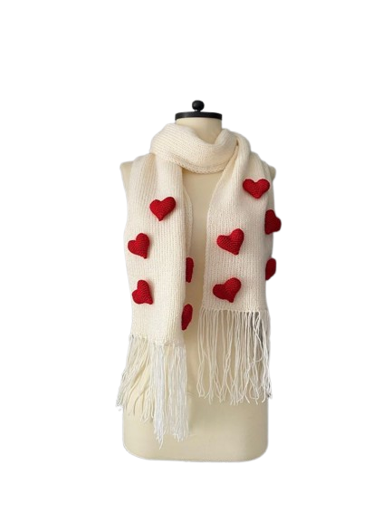 Heart Knit Scarf – soft knit with heart appliqués